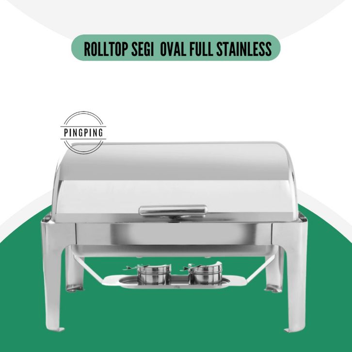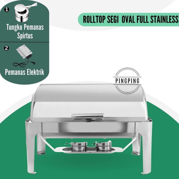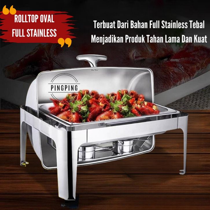 EKSKLUSIF PROMO Chafing Dish/RollTop Segi Oval Stainlees Steel Kualitas Tinggi 9L /tempat prasmanan/alat
