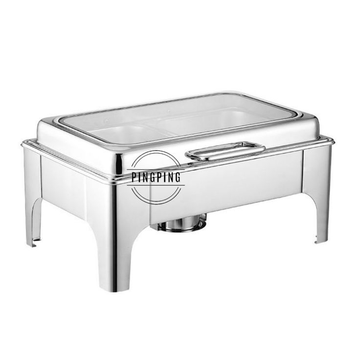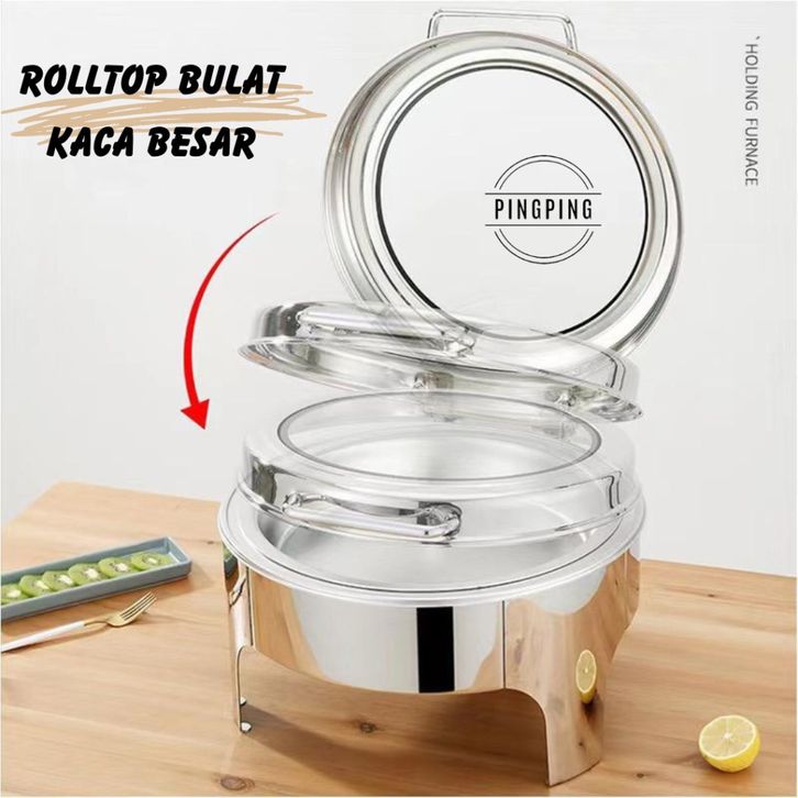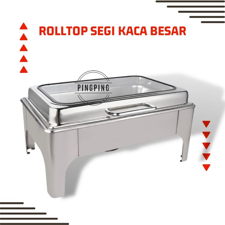 PREMIUM PINGPING - Chafing Dish / Rolltop Segi Kaca Catering Stainless Steel 9 L /tempat prasmanan/set tempat