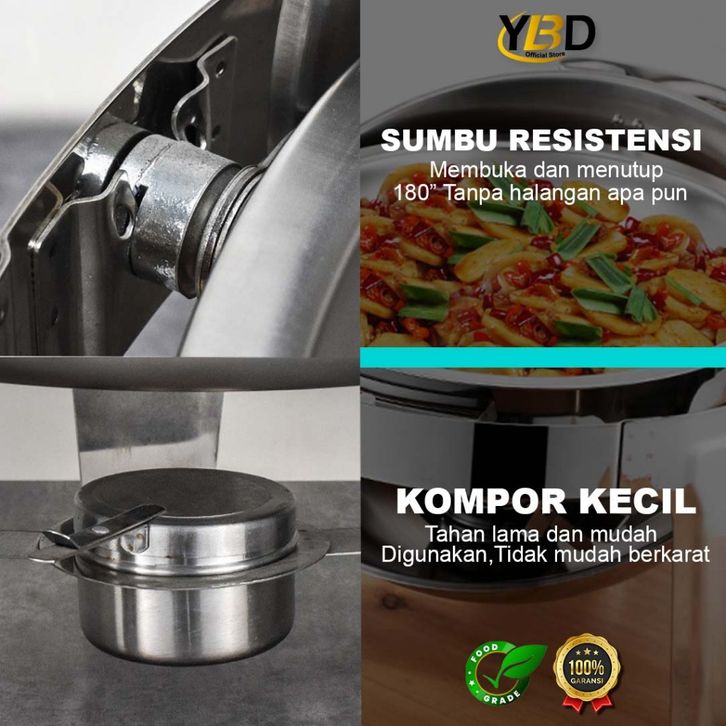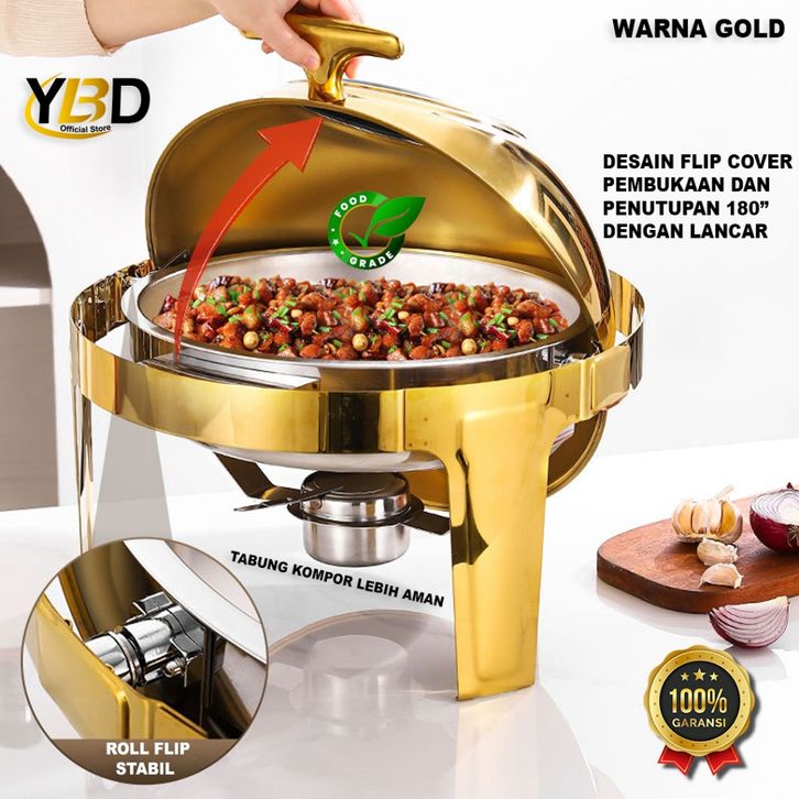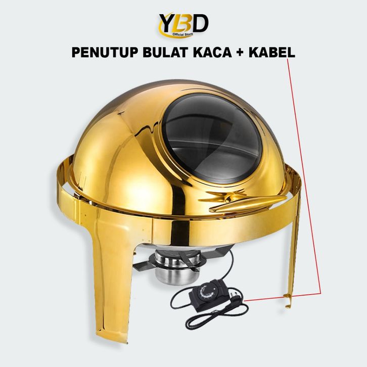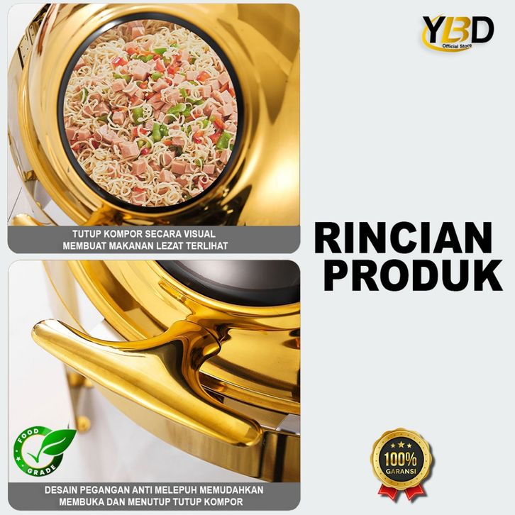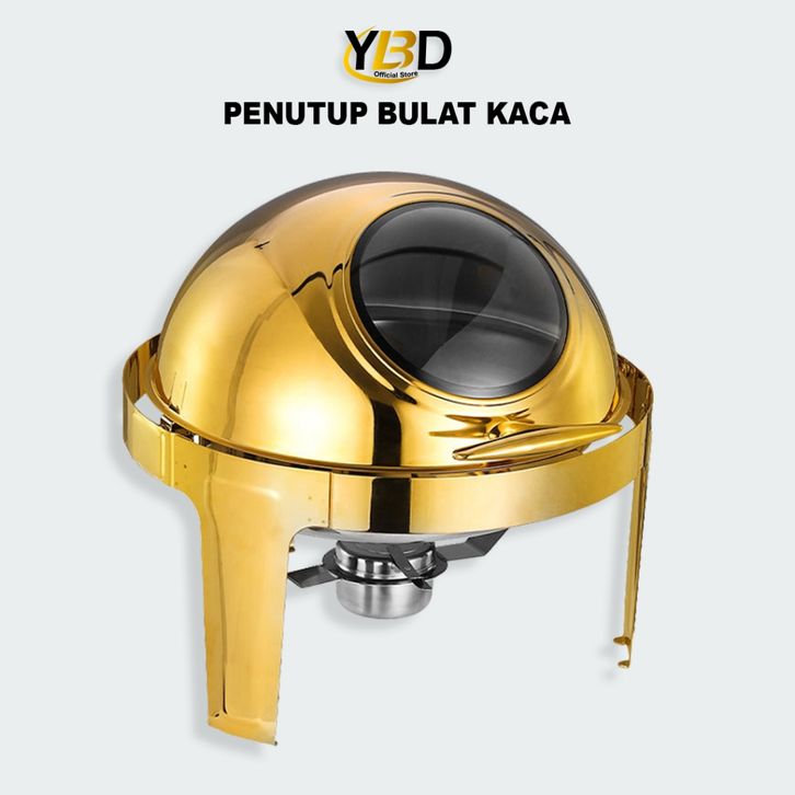 TERMURAH Roll Top Gold Prasmanan Stainless Steel 6.8 Liter Tutup kaca /Round Chafing Dish Stainless Prasmanan