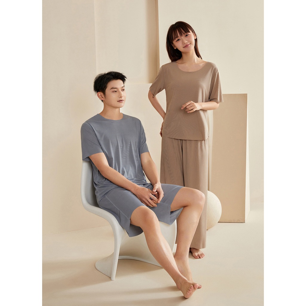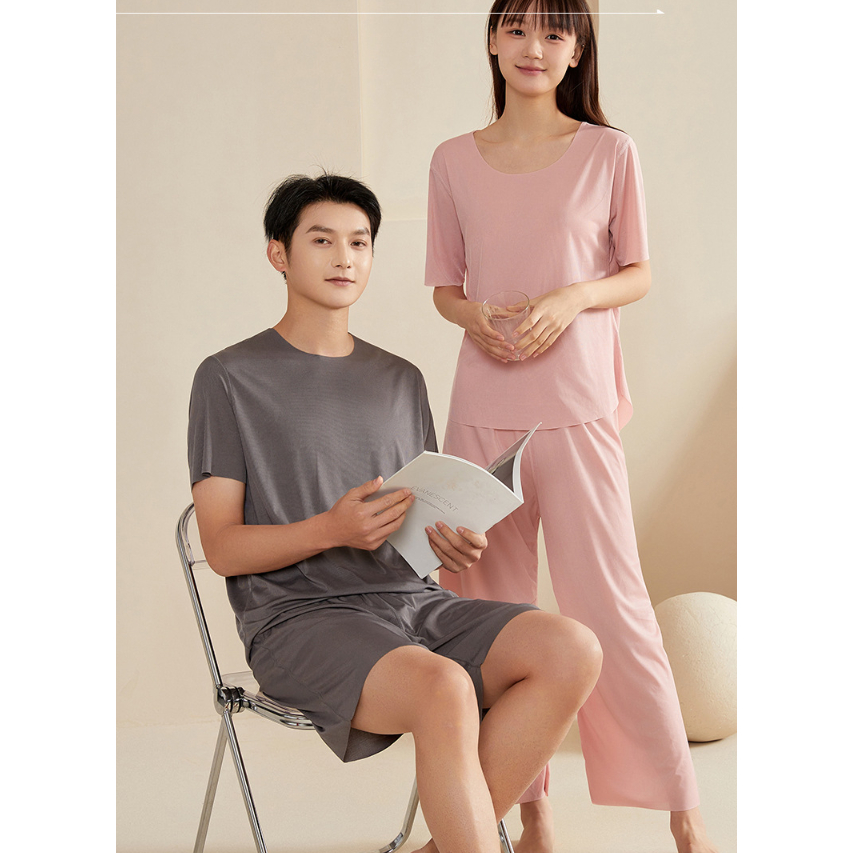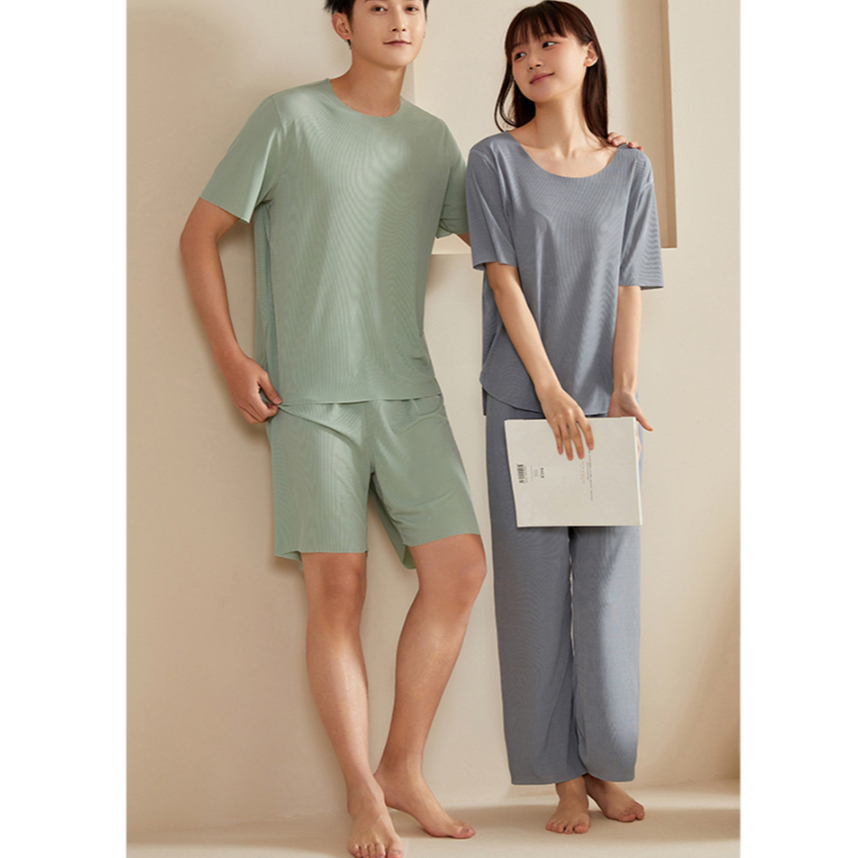 Kenzio_Store Setelan Piyama Couple Baju Tidur Wanita Pria Premium Baju Lengan Pendek One Set Cool Feeling Nyaman Dipakai