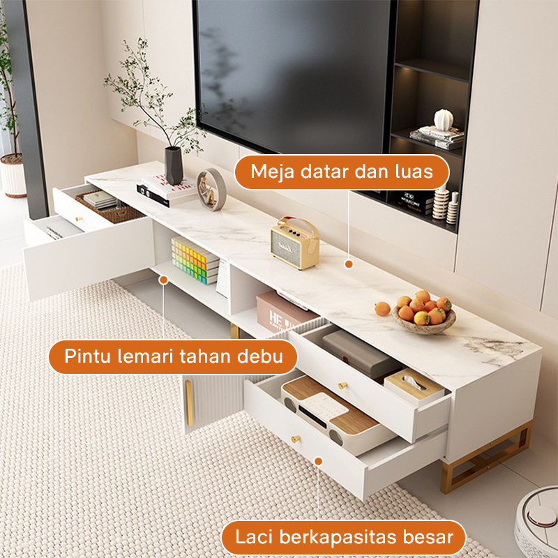 LEMARI TV MEJA TV TEKSTUR MARMER RAK TV MINIMALIS BUFET TV KAYU+LOGAM TV SERBAGUNA LEMARI MURAH TERBARU BEST SELLER