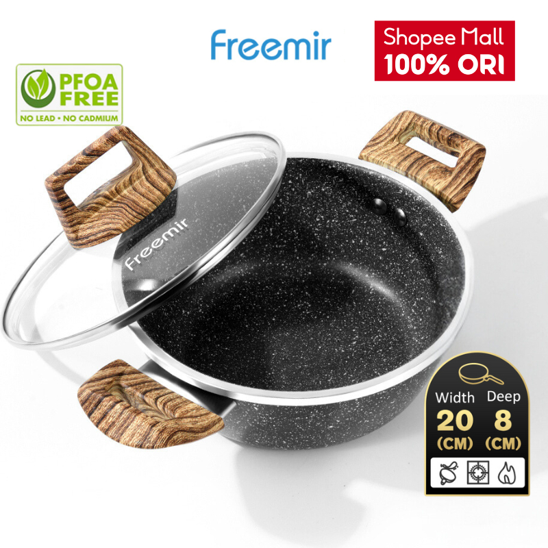 𝙎𝙥𝙚𝙘𝙞𝙖𝙡 𝙛𝙧𝙚𝙚𝙢𝙞𝙧 Wajan Panci Black Granit 20cm Anti Lengket Serbaguna Pegangan Kayu Anti R