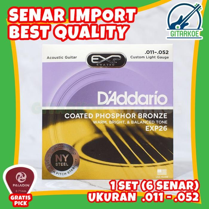 Senar Gitar DAddario String Akustik 011 Coated Phosphor Bronze EXP26