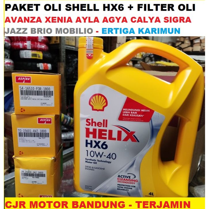Oli Mobil Oli Mobil PAKET OLI SHELL HX6 10w 40 4L + FILTER OLI MESIN MOBIL AVANZA AYLA AGYA CALYA SIGRA JAZZ BRIO YARIS