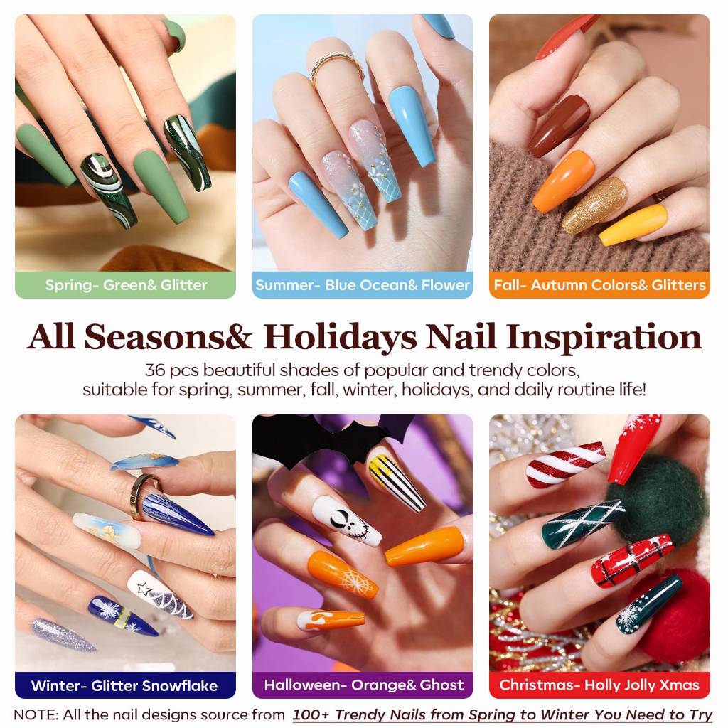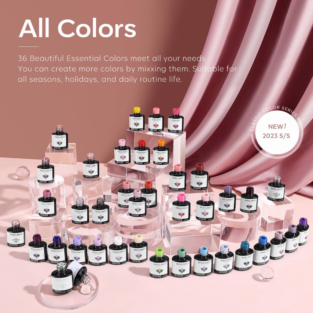 FM - Modelones Gel Nail Polish Set 36 Warna 7ml All Seasons Collection Gel Polish Nail Kit Popular Nude Gray Pink Blue