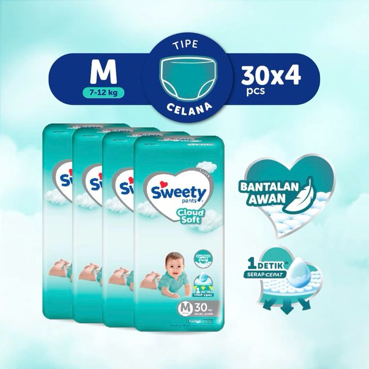 PAKET 4 SWEETY SILVER Pants Popok Cloud Soft Celana Perekat Tape Taped Tapped Sekali Pakai Diaper Baby Bayi