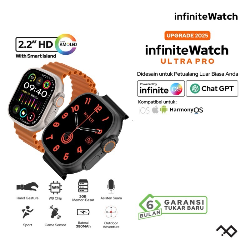 SMARTWATCH INFINITEWATCH ULTRA PRO WITH 2.2" HD AMOLED DISPLAY SERI TERBARU 2025 SMARTWATCH PRIA WANITA ORIGINAL