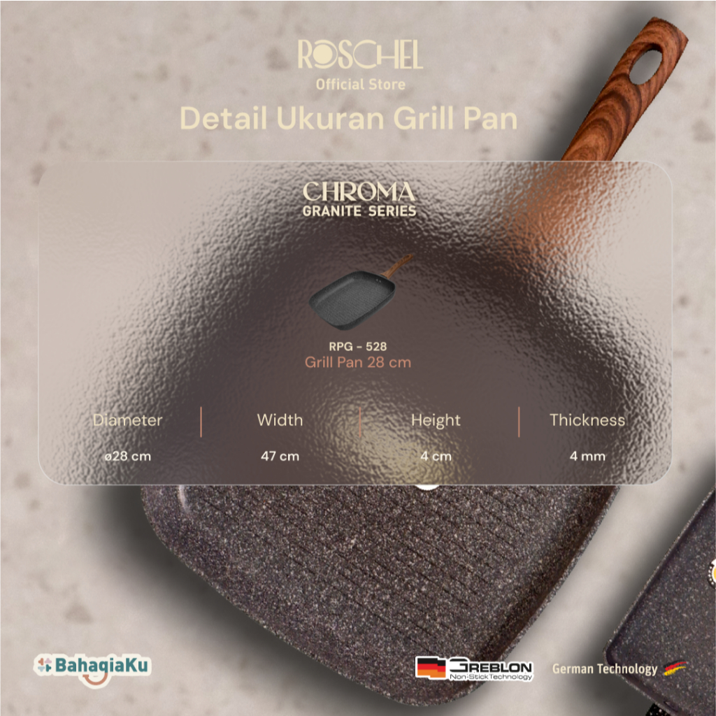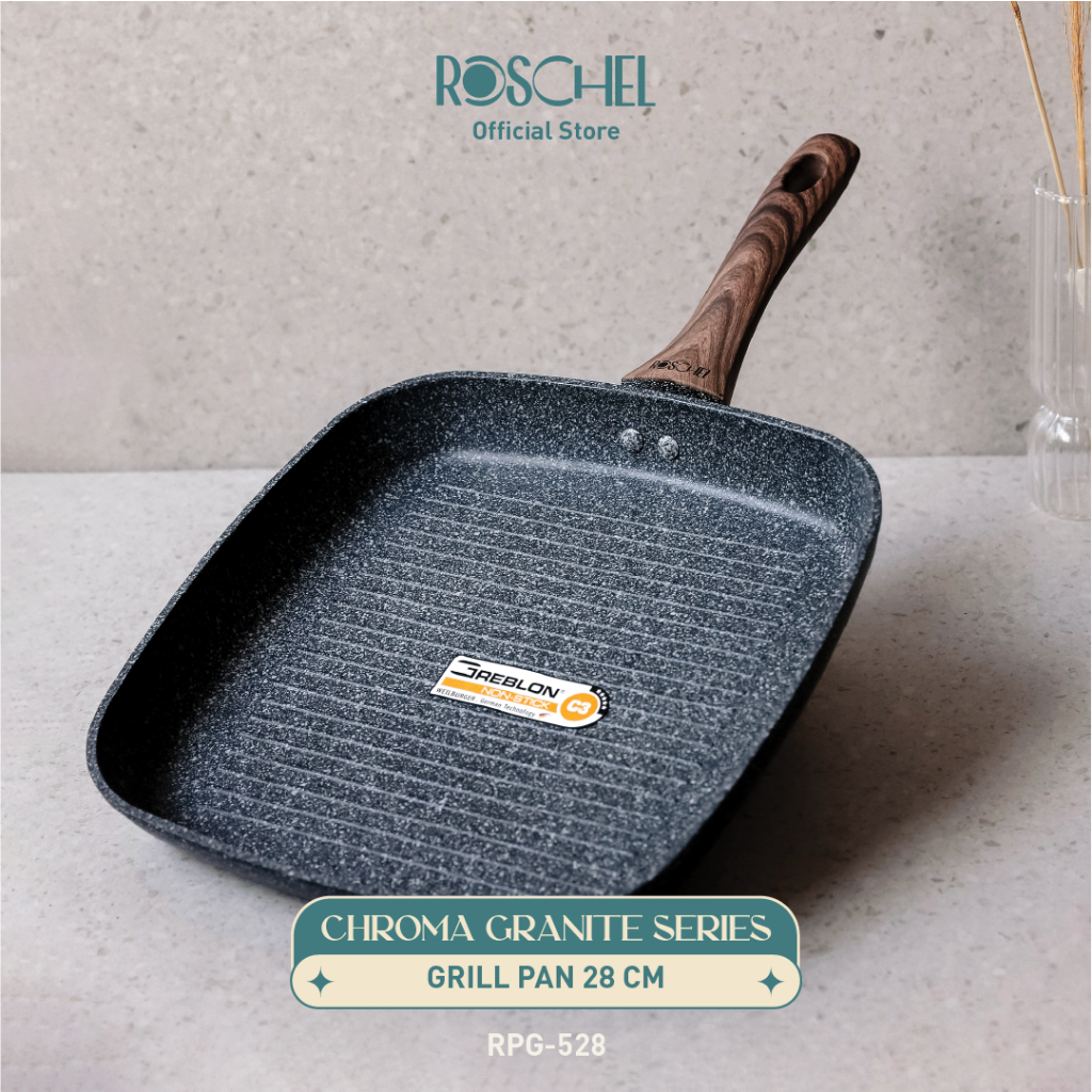 Roschel Chroma Granite Grill Pan 28 cm Non-stick Greblon C3 German Coating Panci Panggang Penggorengan Pemanggang BBQ Ya