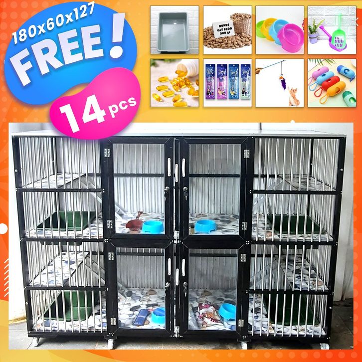 KANDANG KUCING JUMBO Kandang Kucing 4 Pintu Aluminium Kamar Besar Knockdown Anti Karat Alas Keramik Nyaman Fre Aksesoris