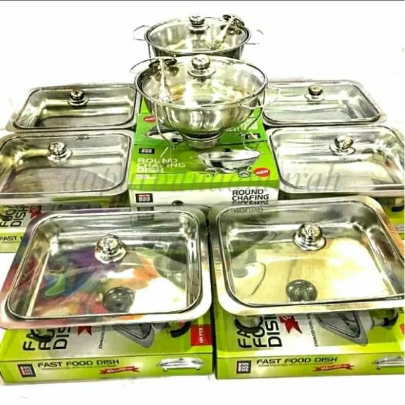 Set Prasmanan Saji 5 Set Stainless Steel Tutup Full Kaca