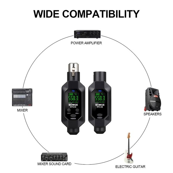 BOMGE WIRELESS TRANSMITTER AND RECEIVER UHF & WIRELESS GUITAR TRANSMITTER RECEIVER,RECHARGEABLE MIC ADAPTER 16 CHANNELS