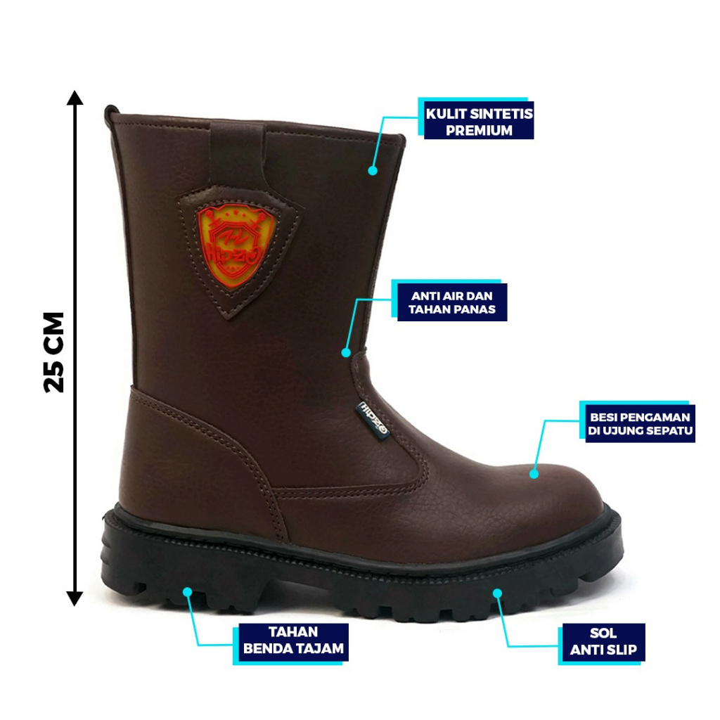 HIPZO Sepatu Boots Safety Ujung Besi M057 Original 100 % Untuk Kerja Proyek Pria