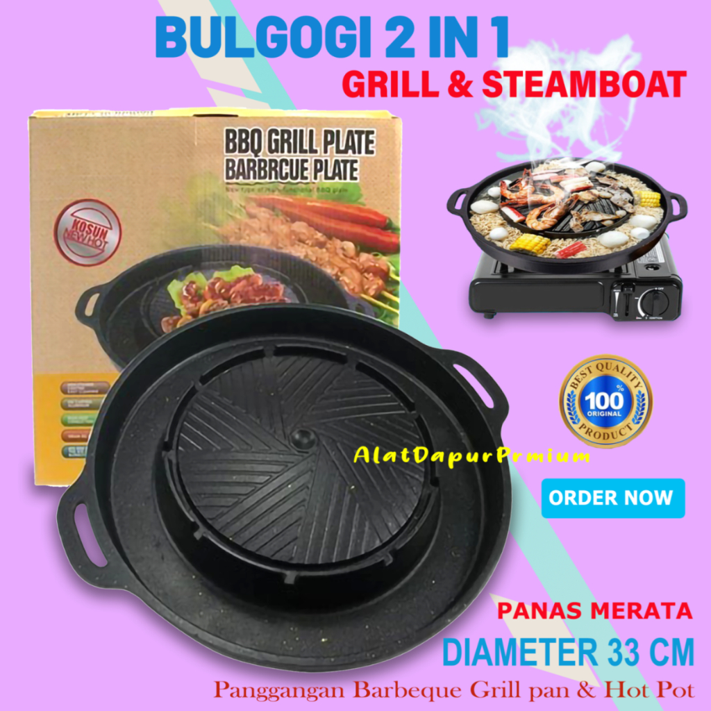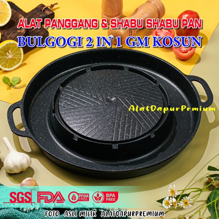 GRILL BULGOGI PAN 2IN1 Alat panggang grill pan shabu shabu Panggangan steamboat marble anti lengket
