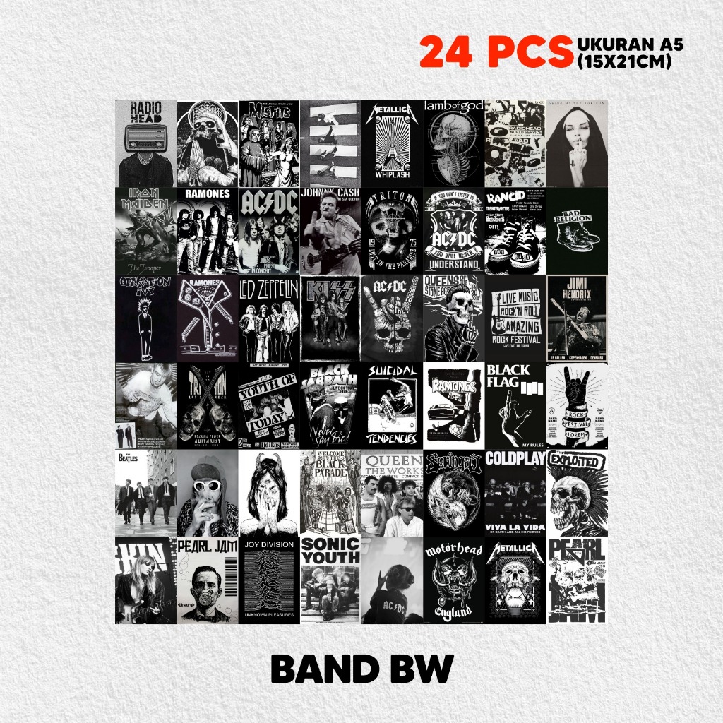 ( 48 PCS) Poster Dinding Band BW Isi 48 | Poster Dinding | Poster Kamar Aesthetic