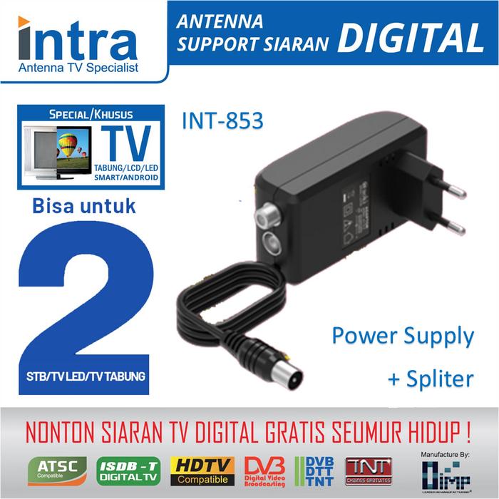 Intra Booster Antena TV Penguat Sinyal / Adaptor Jernih Spliter 2 TV kabel 2 M