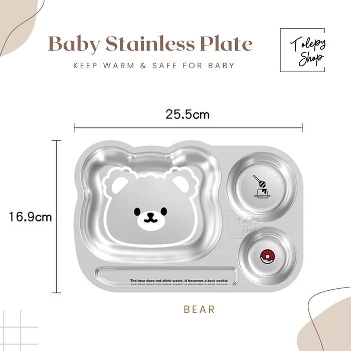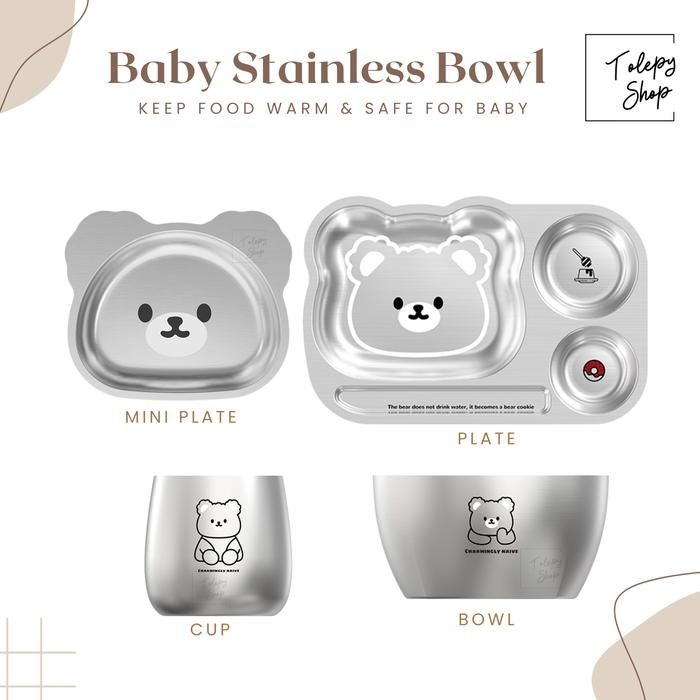 Set Peralatan Makan Bayi Stainless Steel Piring Mangkok Gelas Anti Pecah / Alat Makan Anak Bayi / Toddler Dining Set