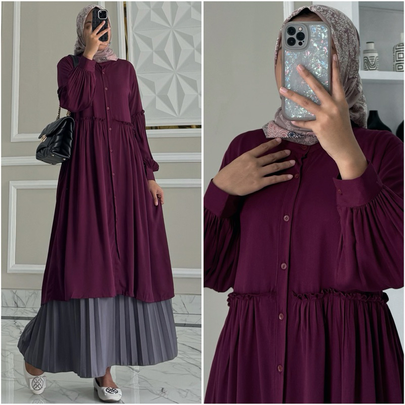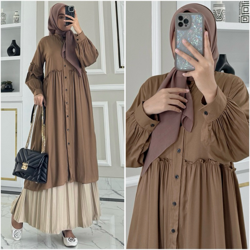 ANGGUN tunik by ZALFA OUTFIT / Baju Atasan Wanita muslim Tunik basic polos rayon twill premium lengan panjang