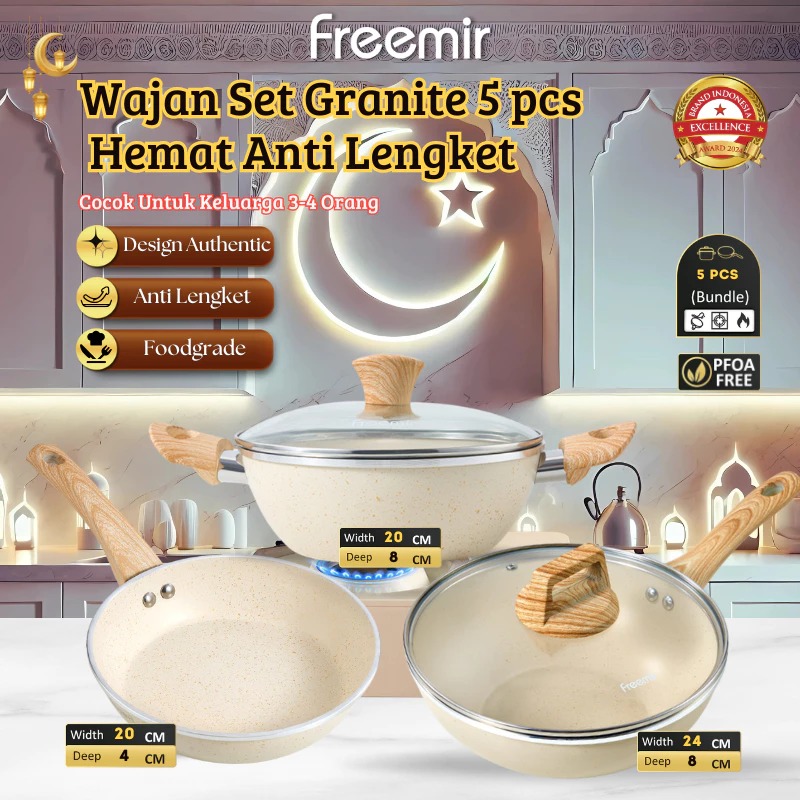 𝙎𝙥𝙚𝙘𝙞𝙖𝙡 𝙛𝙧𝙚𝙚𝙢𝙞𝙧 Wajan Panci Frypan Granite 20/20/24 Cm Warna Beige Anti Lengket Serbaguna
