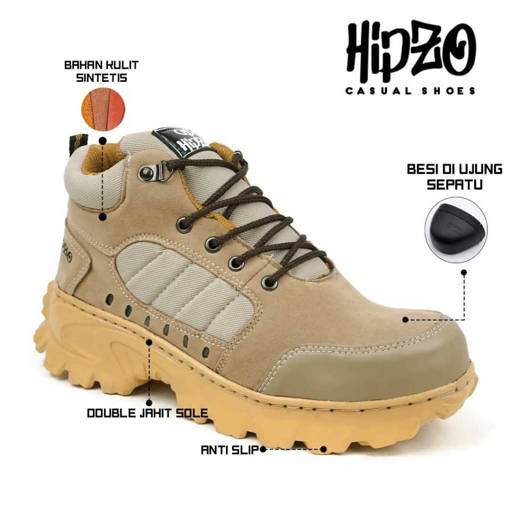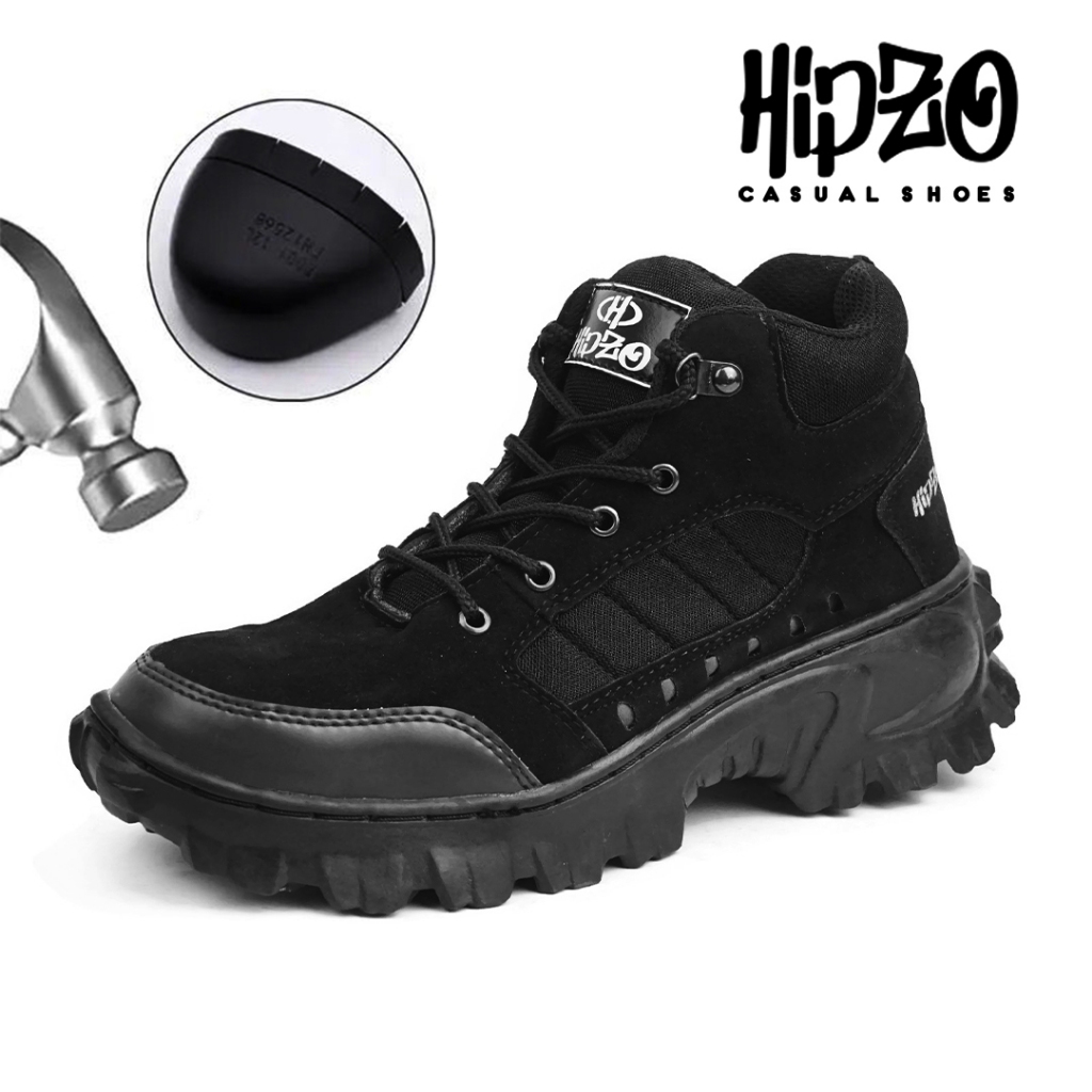 HIPZO Sepatu Safety Boots Tinggi M079 Untuk Unisex Ujung Besi Kerja Proyek Lapangan