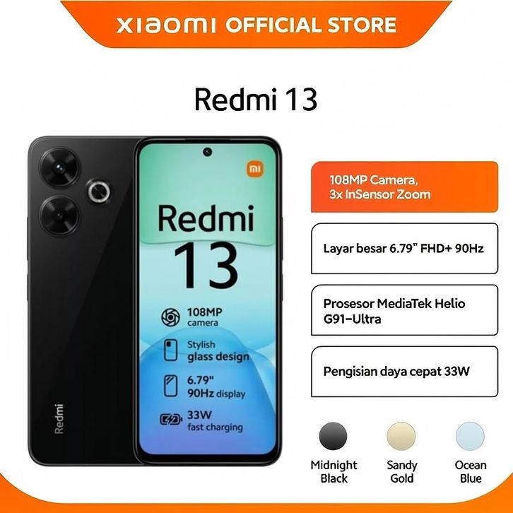 Xiaomi Redmi 13 5G (8GB/128GB) (8GB/256GB) | Kamera 108 MP Super Jernih | MediaTek Helio G91 | Ultra 33W fast charging