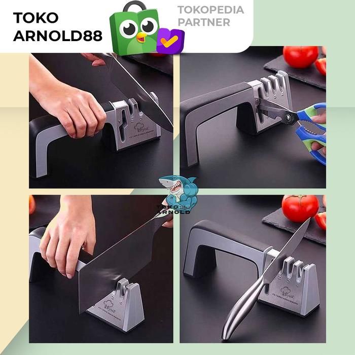 Pengasah Pisau Gunting Knife Sharpener Asahan Pisau Dapur 4in1 Silver