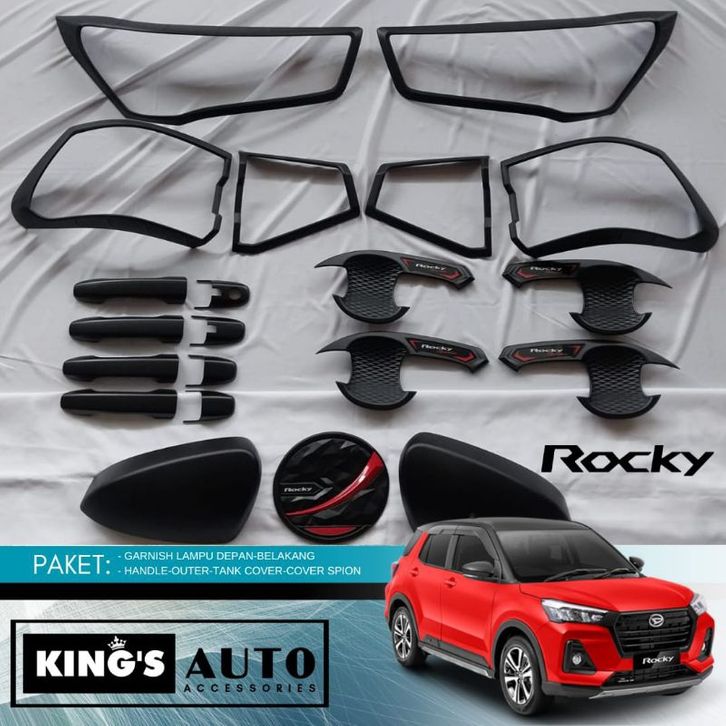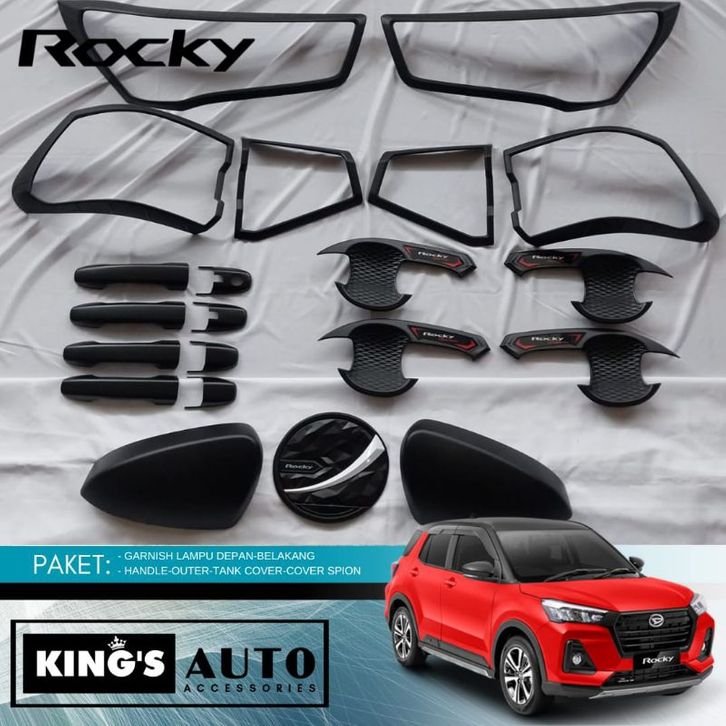 Paket Garnish Lampu Handle Outer Tank Cover Cover Spion Rocky Hitam Doff