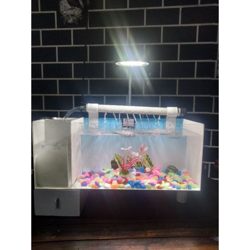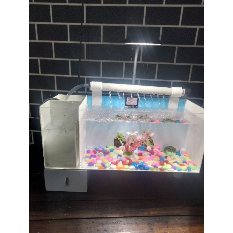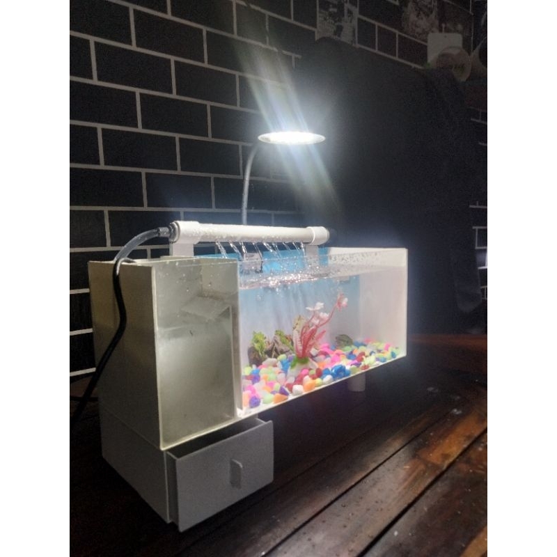 Aquarium Mini Akrilik Minimalis Full Set Besar Jumbo Pompa Filter Dan Lampu Led