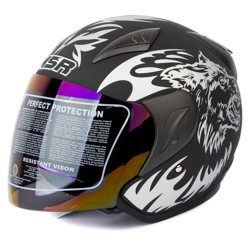 Helm Dewasa Javelin Wolf SNI Half Face Kaca Pelangi