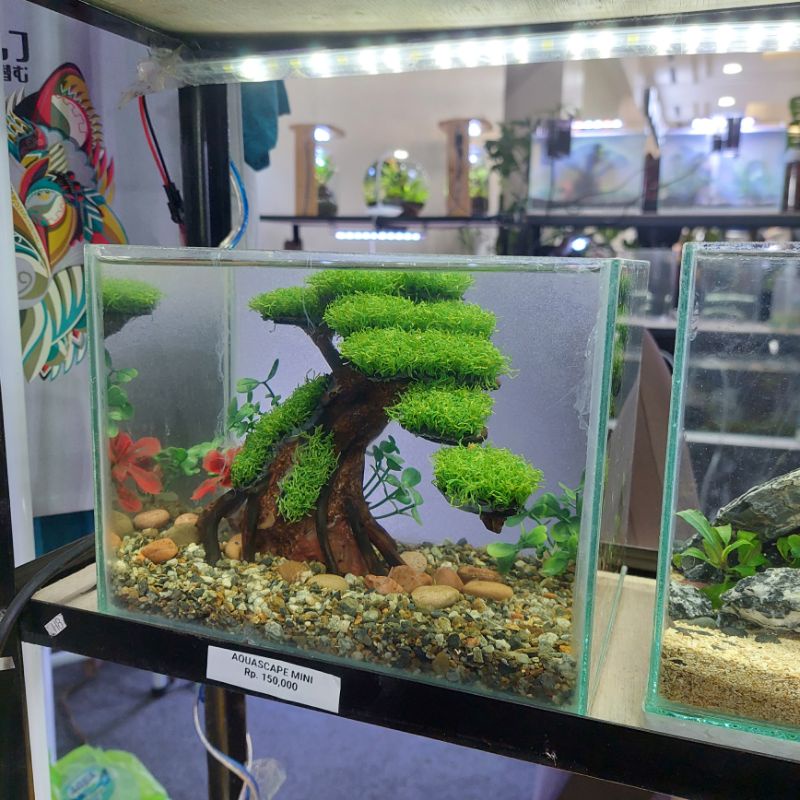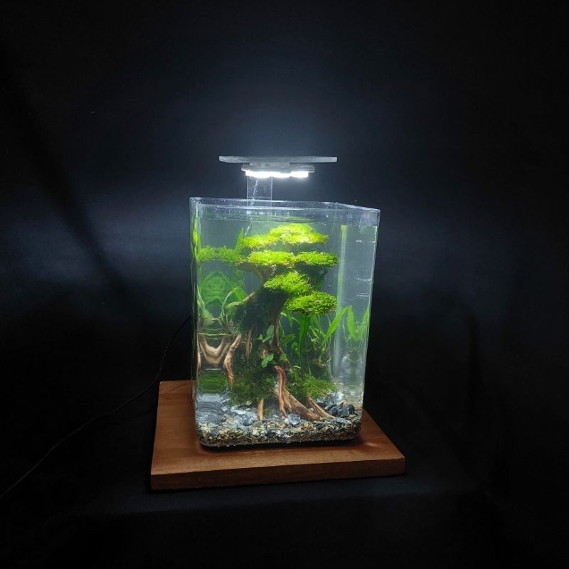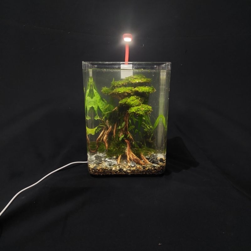 Aquascape Mini Fullset Tema Bonsai atau Natural dengan Lampu USB packing tebal