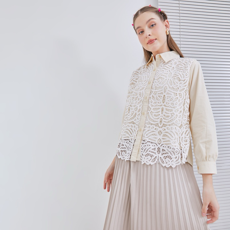 [ Senchi ] - Sumiko Brocade Lace Shirt / Atasan Kemeja Brokat Brukat / Atasan Kemeja Renda Wanita / Kemeja Katun Kombinasi Brokat