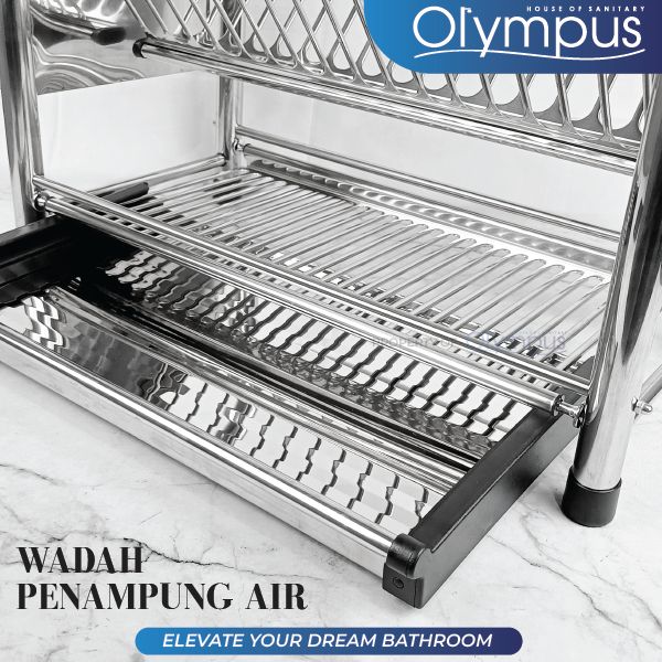 Rak Piring Stainless Steel Multifungsi 50 60cm Peniris Tempat Sendok Pisau 2 Susun