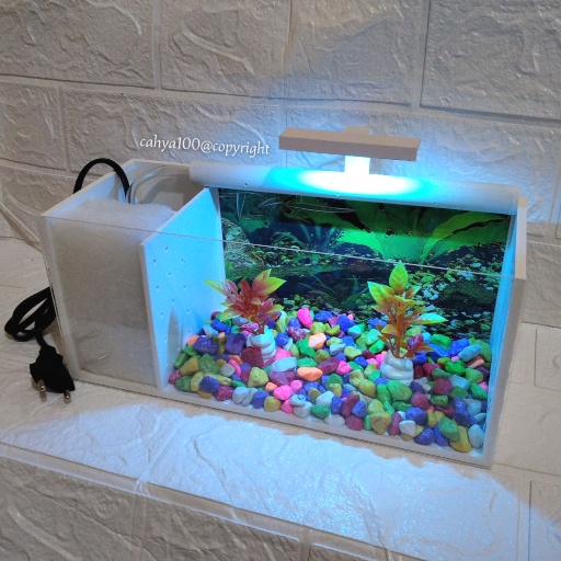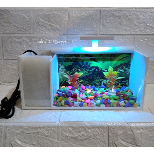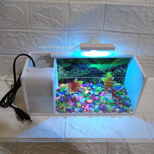 AQUARIUM MINI AKRILIK FULLSET CUPANG SIZE 29x12x12 CM LENGKAP MESIN POMPA FILTER LAMPU DAN AKSESORIS