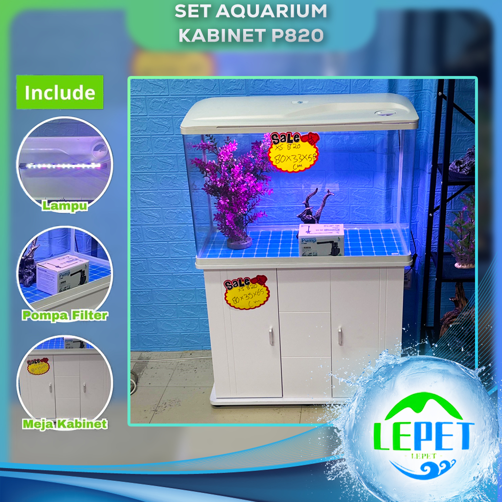 Lepet Aquarium Paket Murah Dan Lengkap Dengan Meja Ukuran P820 / Aquarium Set Cabinet