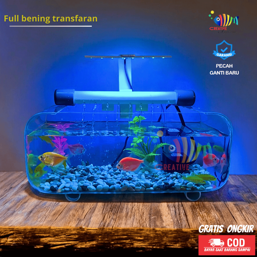 1 Set lengkap Aquarium kaca akrilik bening transfaran lengkap dengan mesin oxygn dan filter sirkulasi tinggal pakai (PT-