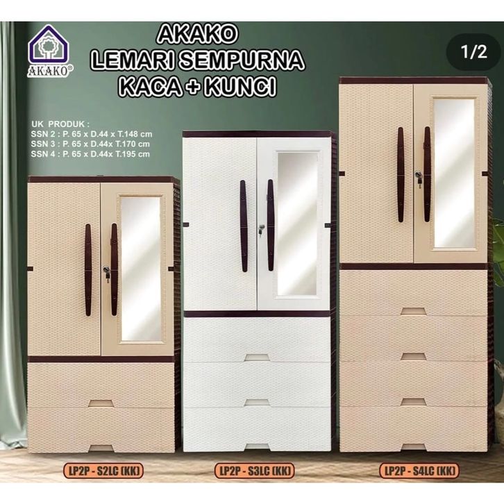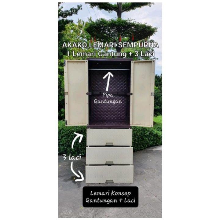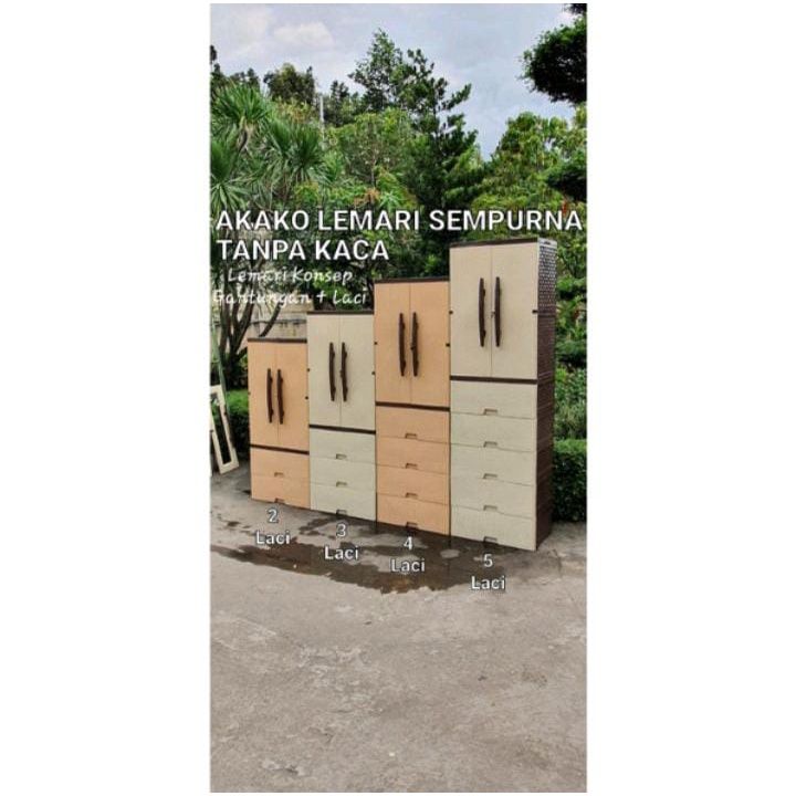 LEMARI PAKAIAN PLASTIK 2 PINTU GANTUNG KACA FULL KUNCI + LACI AKAKO SEMPURNA