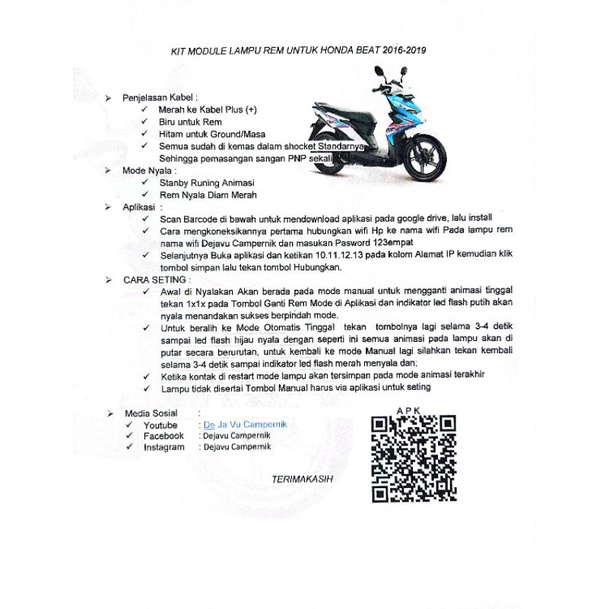 Stoplamp RGB Runing Animasi Beat 2016-2019 + Aplikasi