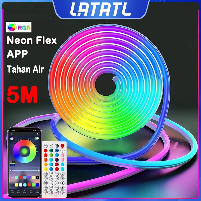 LATATL Lampu Neon Flex Running LED Remote 5m Lampu warna warni LED Running RGB App Control Sensor Tahan Air 24V