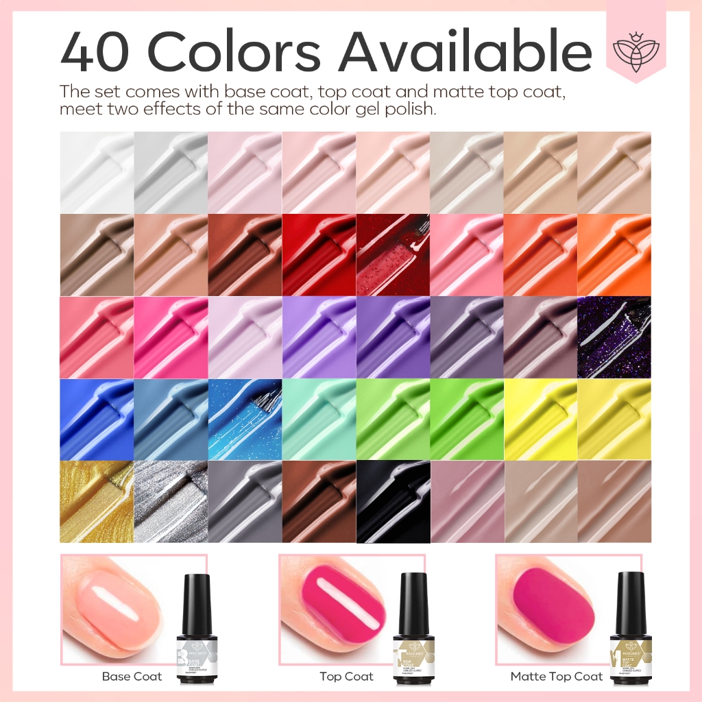 MODELONES Gel Nail Polish Kit 40 Warna Soak Off Gel Nail Polish Nail Primer Base and Top Coat Nail Art Decrations Gel Ma