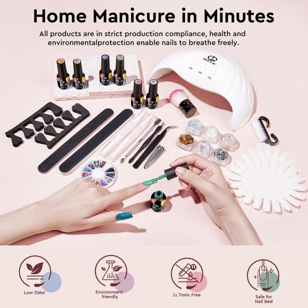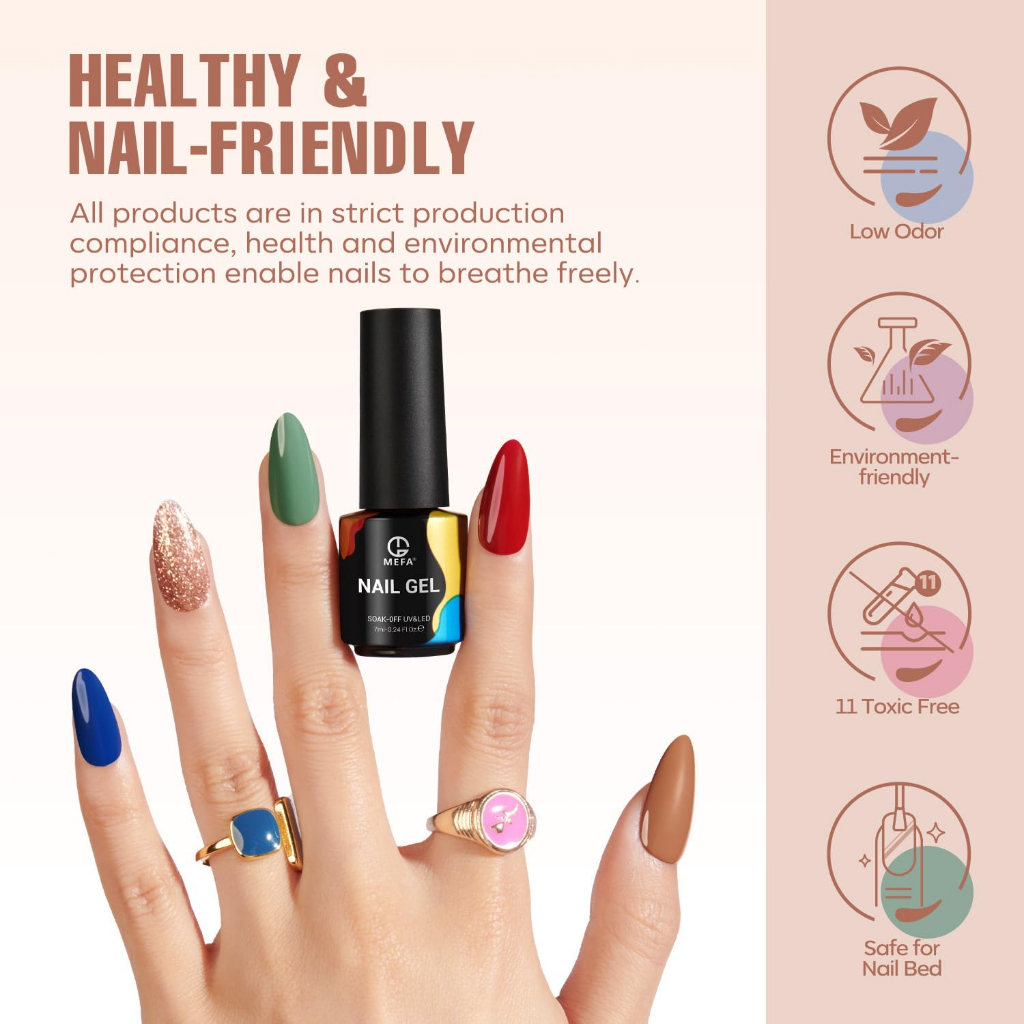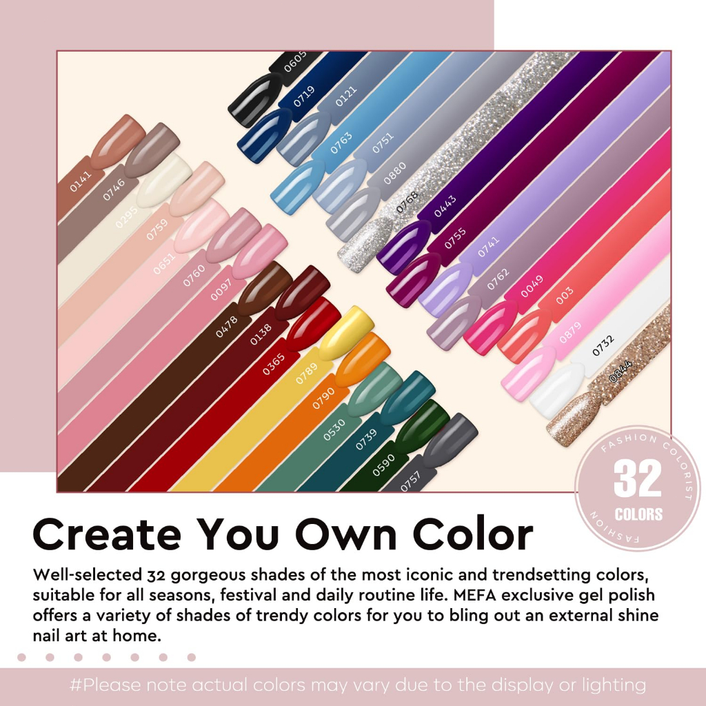 MEFA Nail Art Set 32 Warna Lengkap Gel Nail Polish Kit dengan UV Light Fall Winter Limited Edition Gel Nail Polish Set d