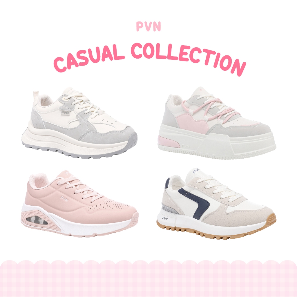PVN SNEAKERS CASUAL COLLECTION WOMEN WANTIA SPORT SHOES PUTIH WHITE CRWAM KREM ABU PINK