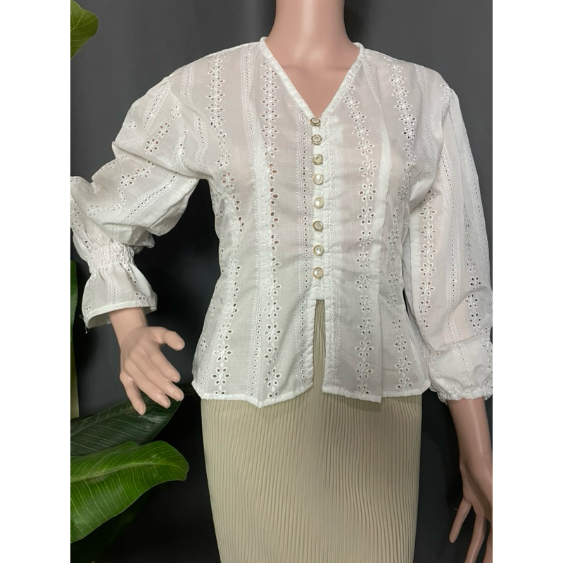 Bora top blouse atasan baju wanita katun bordir bolong hijab friendly kondangan vintage lace shirt