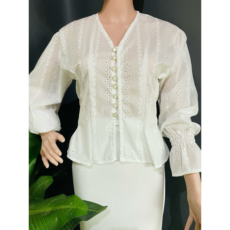 Bora top blouse atasan baju wanita katun bordir bolong hijab friendly kondangan vintage lace shirt