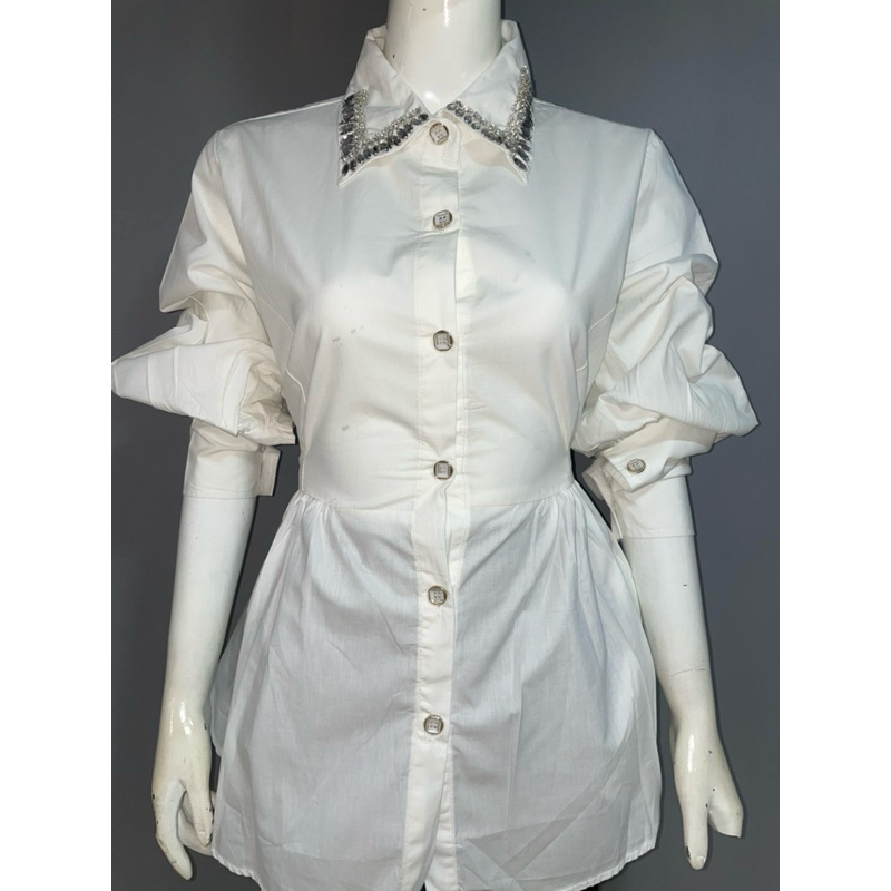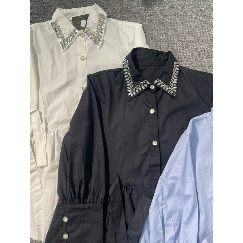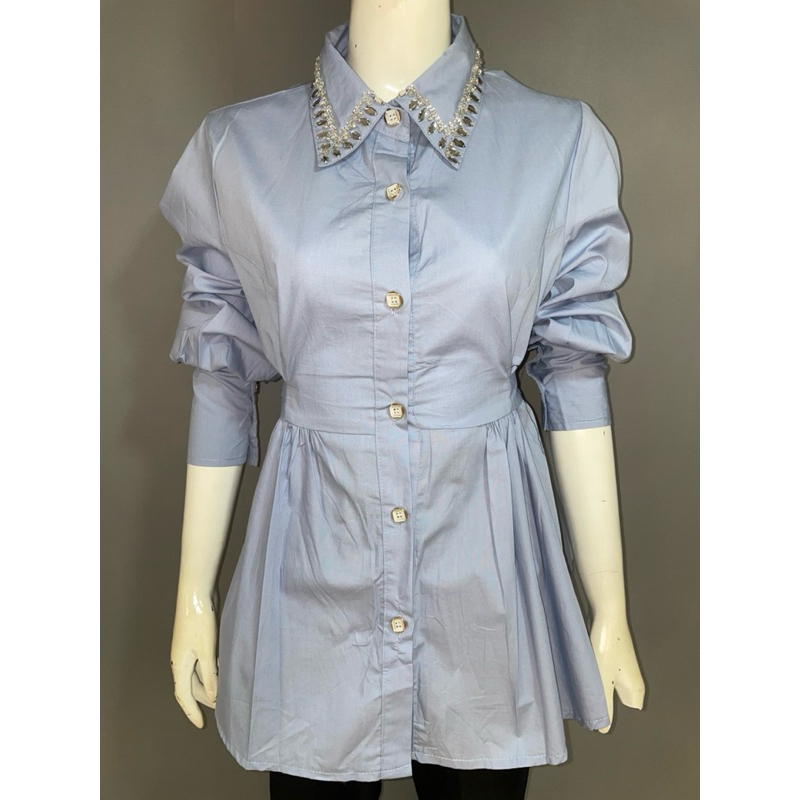 Atasan Wanita Kemeja Muslim dengan payet dibagiam keraj