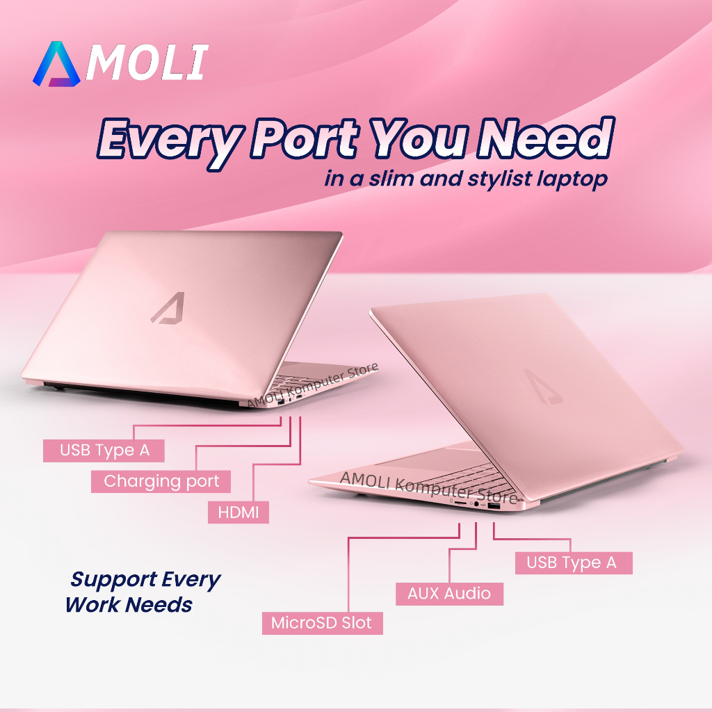 「Garansi Resmi 」Amoli Pink / Hitam/ Silver Asli Baru Laptop Gaming Ram 8Gb + Ssd 256Gb 15.6"Ips Intel N4000 Gratis Insta