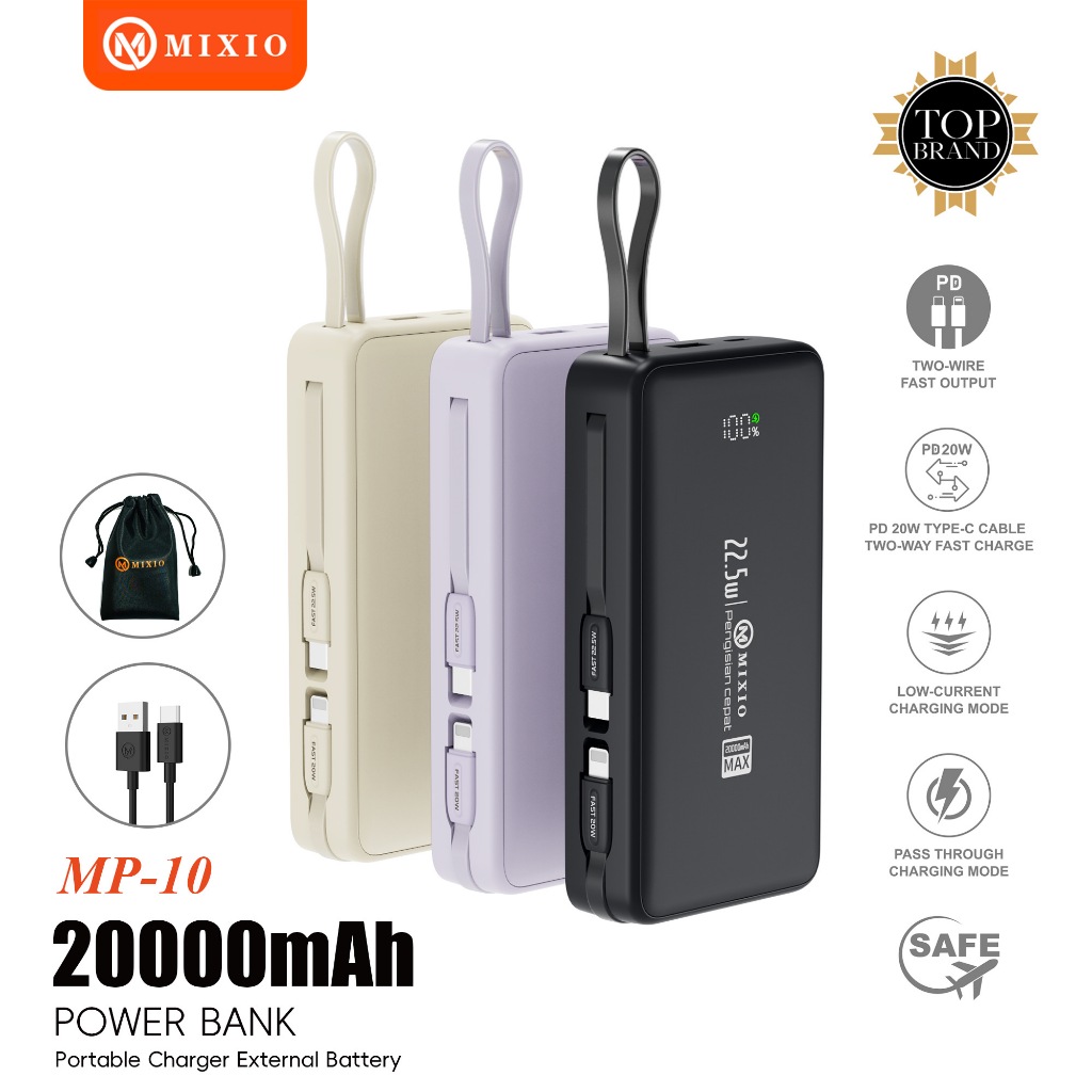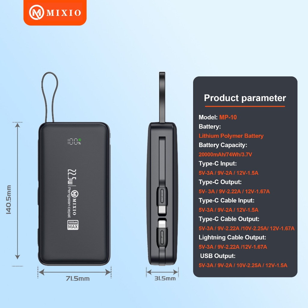 MIXIO MP-10 20000mAh Powerbank 22.5W With Kabel Fast Charging Lightning & Type C For Iphone/Android