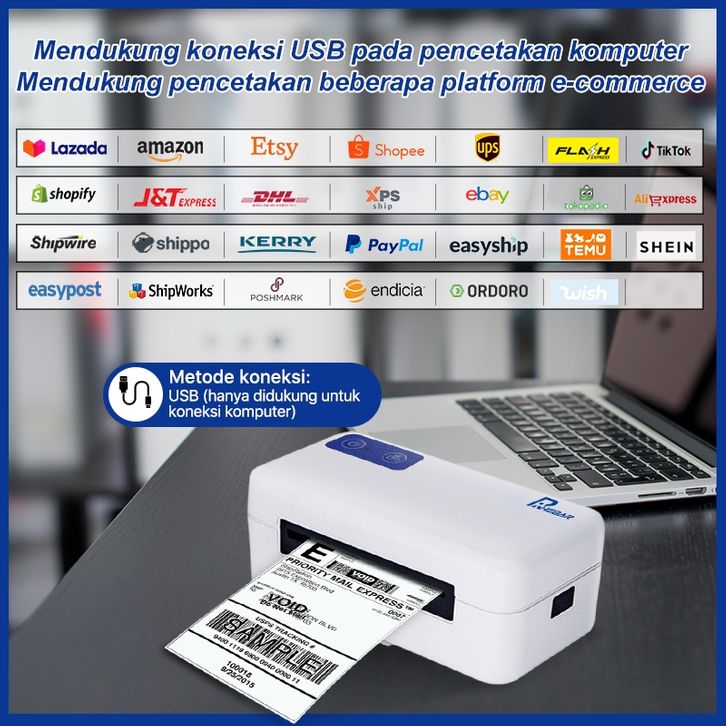 printer mini Rhebar IP-802 /QR-368CBT label printer waybill stiker bluetooth + USB pengiriman barcode Max Sticker A6/A8