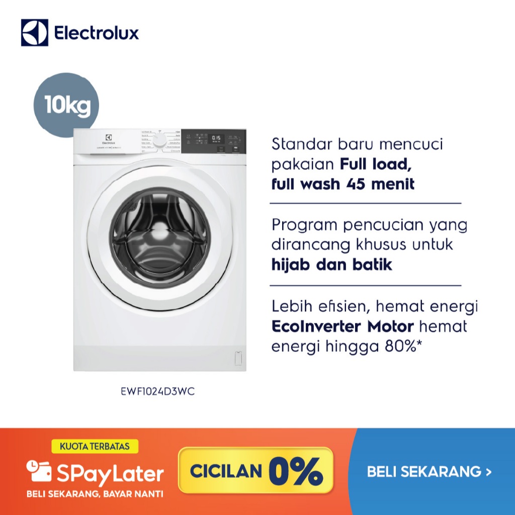Electrolux Mesin Cuci Front Loading Ewf1024D3Wc / Ewf 1024 D3Wc/ Ewf1024 D3Wc - Luar Jabodetabek + Packing Kayu
