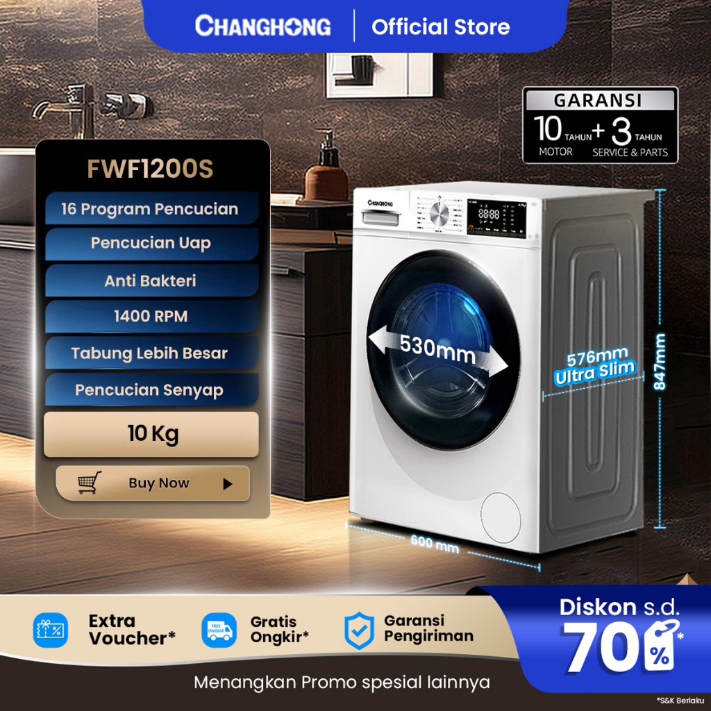 Changhong Mesin Cuci Smart Front Loading Kapasitas 10 Kg Model Fwf1200S - Bukaan Depan Rasakan Tabung Ekstra Besar 530 M