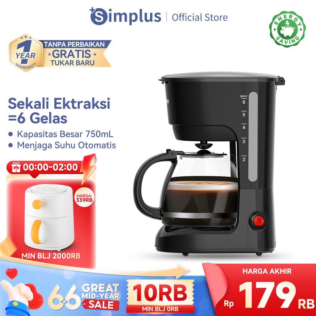 Simplus Mesin Kopi Tipe Drop Peralatan Rumah Tangga 750Ml,2 Fungsi Untuk Kopi Dan Teh