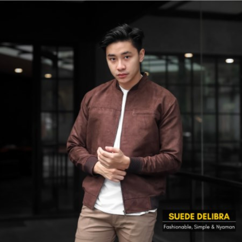 LIBRA Jaket Bomber Kulit Suede Pria Terbaru 2024 Murah Keren Nyaman Adem Dipakai Original Brown